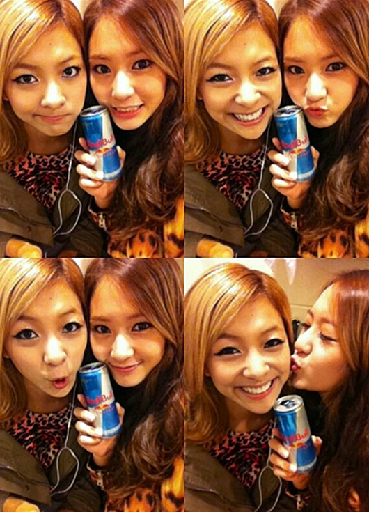 クリスタルは手にエネルギードリンクのレッドブルを握っている。エネルギー注入でアゲアゲなのか。公開された写真4枚の中でも特に目を引くのがクリスタルのキス写真だ。気分アゲアゲのクリスタルは最後の写真でルナの頬にキスをして愛情を表している。