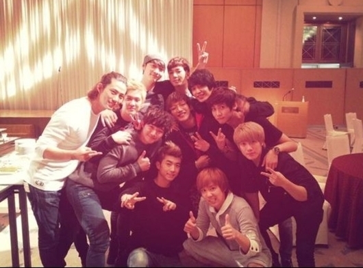 写真にはホンギをはじめとするFTISLANDのメンバーたちと、2PM、MBLAQのメンバーらが親しげなポーズを取っている。