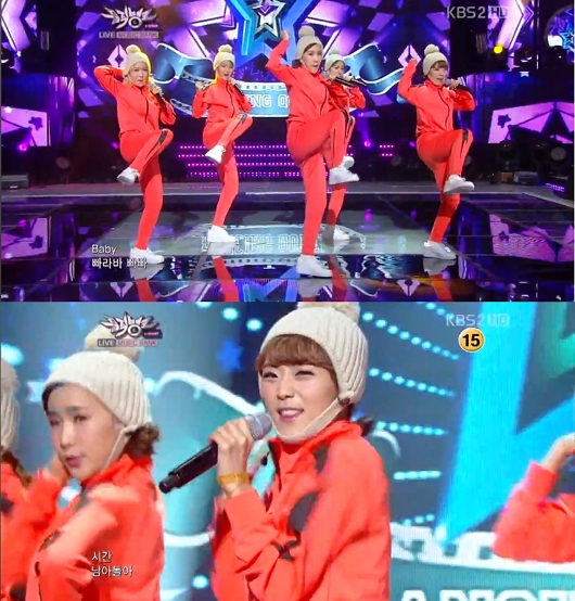 鮮やかなオレンジ色のトレーニングウェアとニット帽で統一した5人は、クレヨンポップならではの楽しくてパワフルな振り付けを放送初披露。噂のサイドキックも見事に決まり、カムバックステージを無事に終えた。
