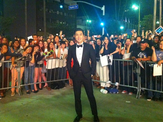 写真のシウォンは海外ファンたちに一緒に写真に納まっているが、ブラックタキシードのスタイリッシュなビジュアルはいつもながらに決まっている。