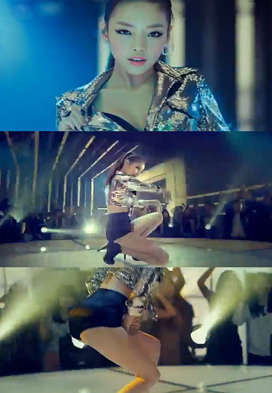 この投稿写真はハラの出演している焼酎のコマーシャルをキャプチャーしたものだが、ハラはゴールドのシャツとヒップラインが強調されるブラックのホットパンツでセクシー美を誇示している。