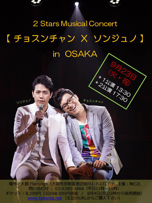 【チョスンチャン X ソンジュノのミュージカルコンサート in 大阪(9/23)】 開催!!