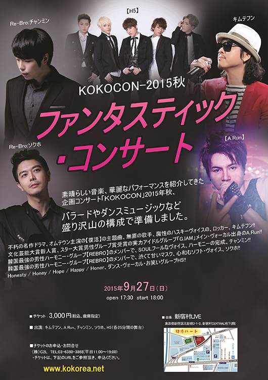 - チケット販売先 : www.kokorea.net (9/20(日)、13時から、販売開始)