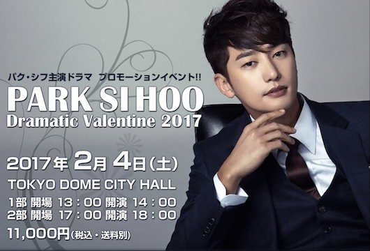 パク・シフ主演ドラマ プロモーションイベント PARK SIHOO Dramatic Valentine 2017が6月15日に「延期」