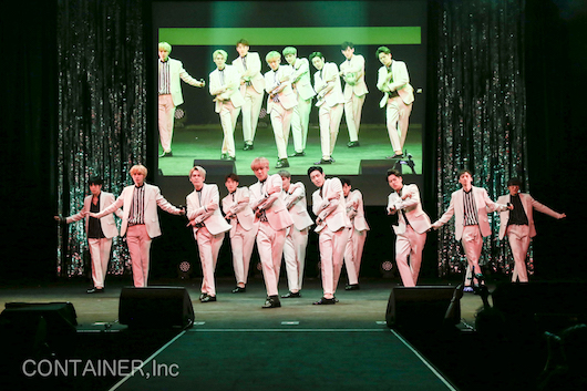 そんなシングルリード曲の「BANG! BURN! LOVE」はダンスクラシックムードなファンクナンバー。12人のキレキレのパフォーマンスと相まって、ライブで盛り上がること必至。カップリングの「KIZUNA」はメンバー全員で手がけた、仲間との「絆」を歌ったバラードである。記者会見後、当日のライブ(昼・夜の2回公演)で本編最後にその「BANG! BURN! LOVE」と「KIZUNA」を立て続けに初パフォーマンス披露した。パフォーマンス直前には先日YouTubeで一部公開したミュージックビデオとレコーディングやミュージックビデオ撮影のメイキング映像、更には新曲に対するメンバーの意気込みがミックスされたニュームービーが上映され、雰囲気を盛り上げる。映像が終わった瞬間、メンバーが真っ白なニューコスチュームに着替えて再登場するとファンは大盛り上がり。すぐさまニューシングルのパフォーマンスがスタートし更にテンションアップ!ホワイトスーツを身にまとった長身のメンバーが繰り広げる、フォーメーション抜群のアッパーなダンスと歌に会場が終始盛り上がった。「いかがでしたか!ノリノリで皆さんと一緒踊れる曲です!皆さんと一緒に盛り上がれる曲なので応援してください!」本編最後は「KIZUNA」。メンバーが全員がスッと横一列に立ち並んで歌いだす。ファンはペンライトをスーツカラーと同じホワイトに合わせ、曲をじっくり聴きつつペンライトを揺らす。「いまがあるのはメンバーが居てくれたから」。ともに明日へと向かおう、と歌うメンバーにファンはペンライトを振りながら聴き込む美しいラストナンバーとなった。