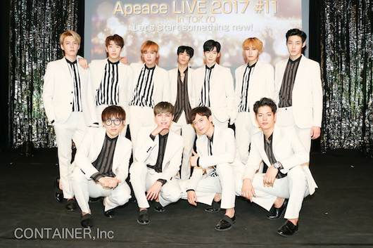 今年、Apeaceは兵役を終えて復帰したヒョンソン、そしてジヌが加わり12人体制でニューシングルを発売する。今回初披露を行ったライブはヤマノホールで毎月行われている定期公演「Apeace Live2017」の#11。まず、そのライブ直前にメンバー全員が記者会見を開き新曲への想いを語った。