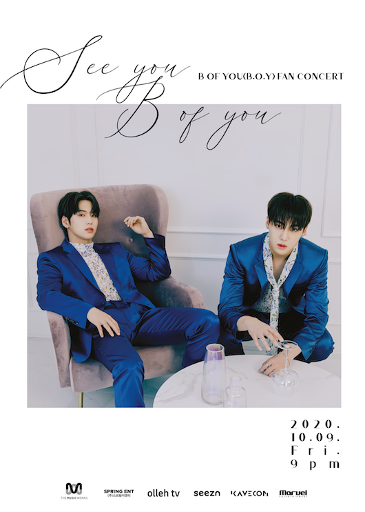 B Of You初のオンラインファンコンサートのタイトル〈See You〉はファンクラブMeet YouがB Of Youを‘見る’という意味が込められており、メンバー二人とも歌とダンスの確かな実力があるオールラウンダーなだけに、特別なソロパフォーマンスはもちろん、最新アルバム『Phase Two : WE』からアルバムリード曲の「보고싶다(Miss You)」を始め二人のシナジーが見れるステージ、そしてB Of Youといえばバラエティー番組やラジオで話題になっている抜群のトークセンスなど、見どころ満載のファンミーティングとコンサート両方の特性を生かしたファンコンサートに期待が高まっている。