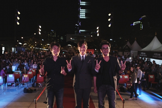 3人が幾重にもなった観客の間に設置された花道を手を振りながらにこやかにステージに登壇すると、若い女性から年配の方までその黄色い歓声と拍手が鳴りやまないほどで、韓国では9月13日から公開され、『バイオハザードV リトリビューション』などのハリウッド大作を押しのけて興行成績No.1となった本作の人気の高さをうかがわせた。