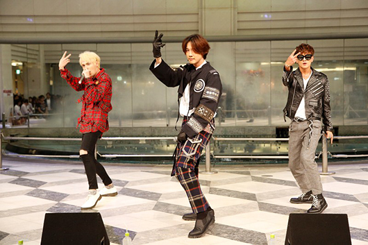 イベント会場には2,000人にも上るファンが詰めかけ、熱気も最高潮になった頃、メンバーが登場。辺りは黄色い歓声に包まれた。