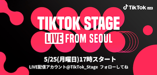 ショートムービープラットフォーム「TikTok(ティックトック)」は、”TikTok Stage Live From Seoul”を5月25日(月)17時からTikTok LIVEでライブストリーミング配信します。本ライブストリーミングは、正式実装前となるTikTokのライブストリーミング機能「TikTok LIVE」を用いて実施します。