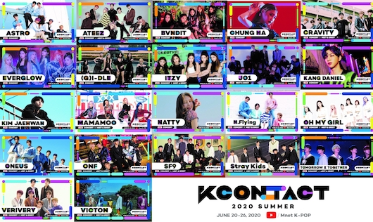 『KCON:TACT 2020 SUMMER』の K-POP コンサートには ASTRO、ATEEZ、BVNDIT、CHUNG HA、 CRAVITY、EVERGLOW、(G)I-DLE 、ITZY、JO1、KANG DANIEL、KIM JAEHWAN、MAMAMOO、 NATTY、N.Flying、OH MY GIRL、ONEUS、ONF、SF9、 Stray Kids、TOMORROW X TOGETHER、 VERIVERY、VICTON が追加で名を連ねました。先月 28 日に発表された AB6IX、GFRIEND、 Golden Child、IZ*ONE、LOONA、MONSTA X、NATURE、PENTAGON、THE BOYZ、TOO を含めて総勢 32 組 のアーティストが 1 週間、毎日違うコンセプトの仮想空間で時間と空間の限界を超えてファンと会うことになります。