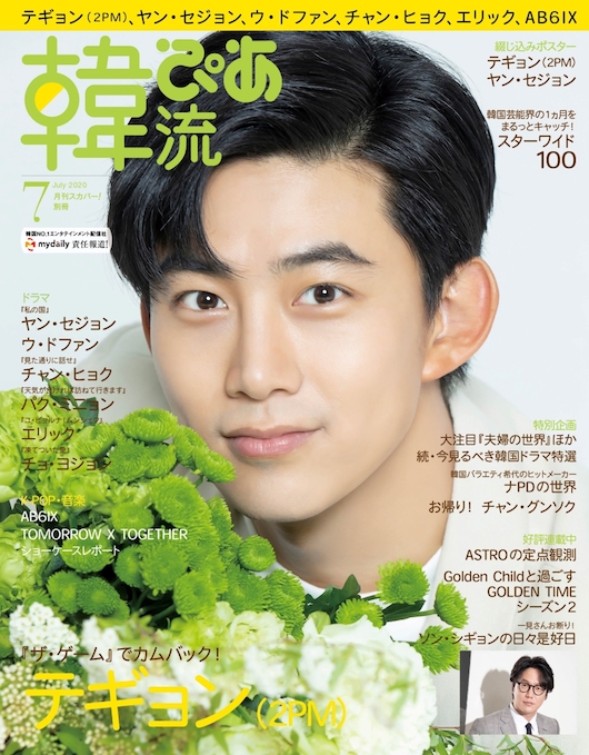 2020年7月号の表紙と巻頭を飾るのは、6人組男性グループ2PMのメンバーで、俳優としても幅広く活動しているテギョン。