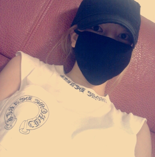 NSユンジが9日、自身のツイッターに掲載した写真は、帽子と顔を半分以上覆う大きなマスクを着用しソファに横たわっている姿だった。