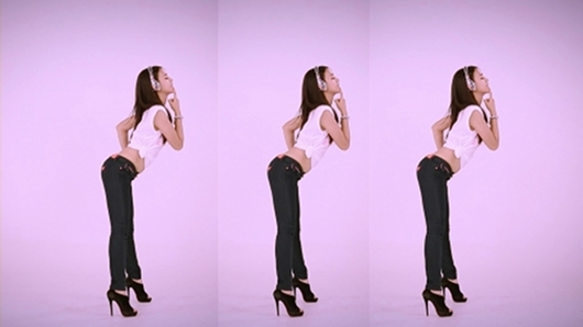 公開された映像では、ブラウンアイドガールズのメンバーはシルエットのポスター画像で一瞬登場するのみ。かわりに登場しているのがジーンズにTシャツ姿で踊る黒髪ロングヘアーの美少女だ。